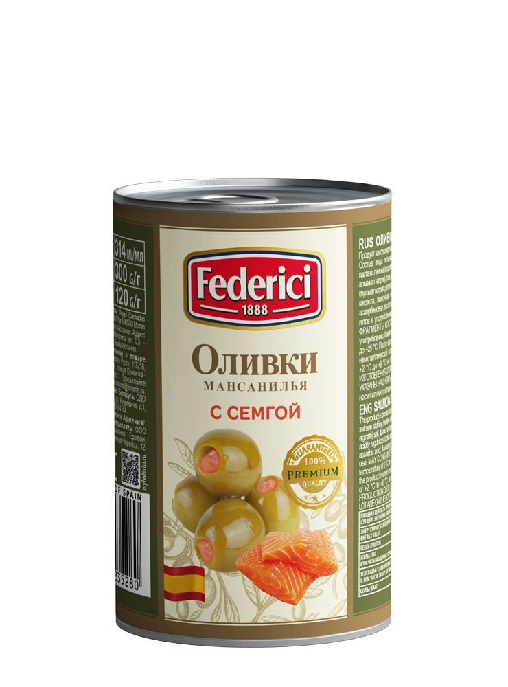 FEDERICI Կանաչ ձիթապտուղ սաղմոնով 300գ․ (Իսպանիա)